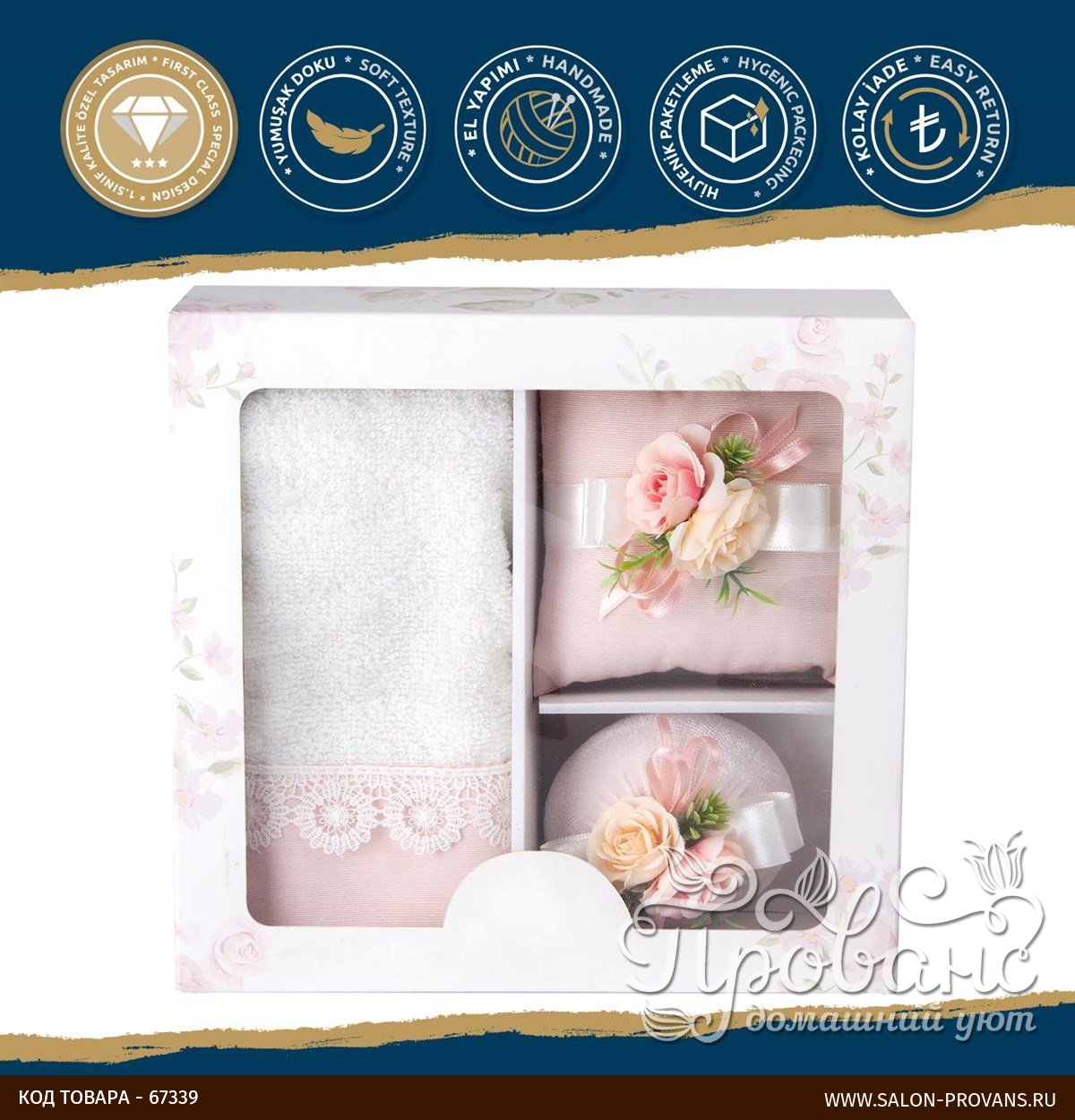 Подарочный набор из полотенца, ароматизированного мыла ручной работы и ароматической декоративной лаванды из коллекции ESTA от турецкого бренда Nazik Home. Сочетание превосходной махровой ткани и изящного декора.