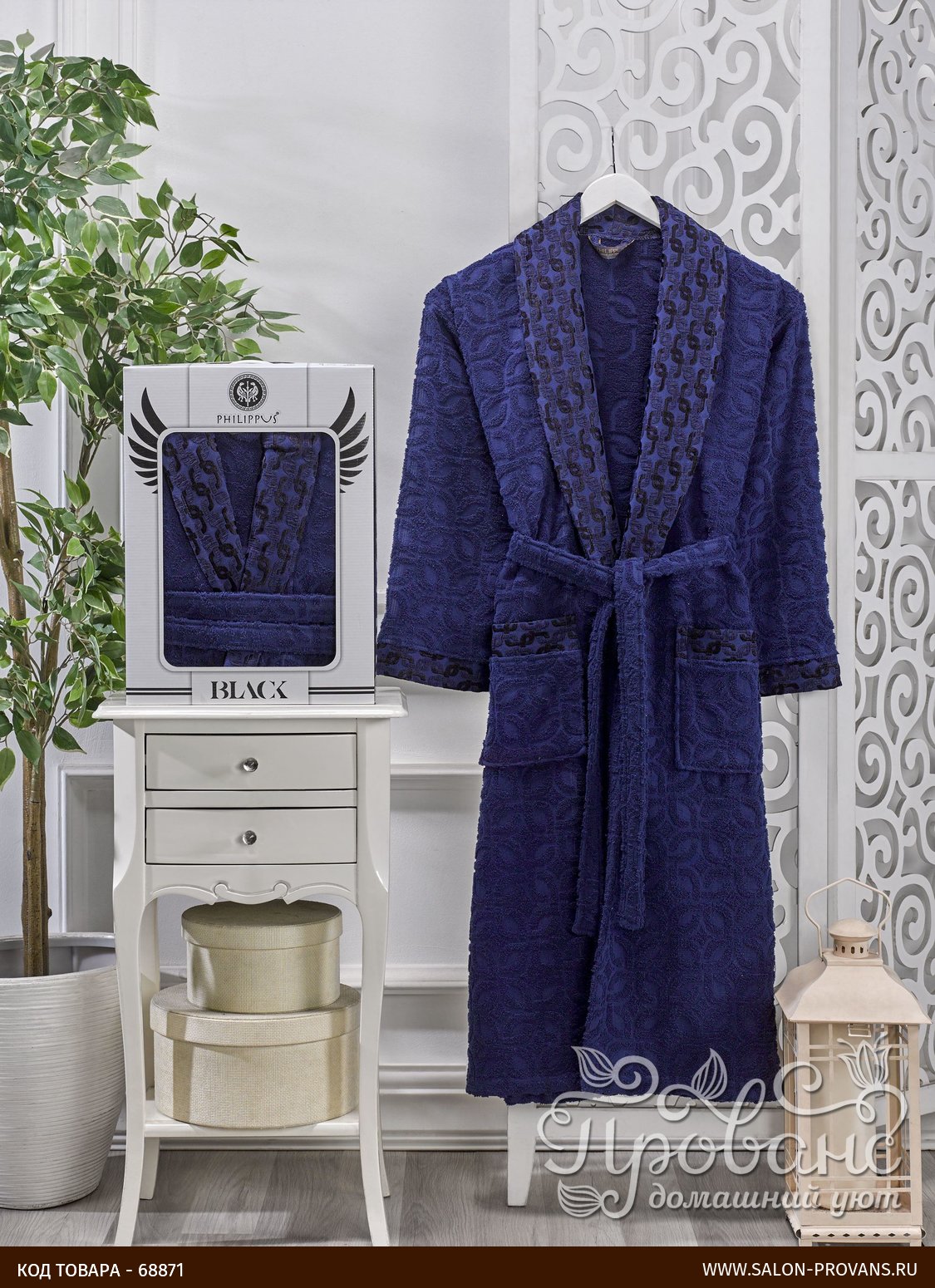 Мужской халат из коллекции VESPIRA от турецкого бренда Philippus, изготовленный из высококачественной и плотной махры средней плотности, украшенной жаккардовым орнаментом. Верх халата сделан из сатина, низ из махры.