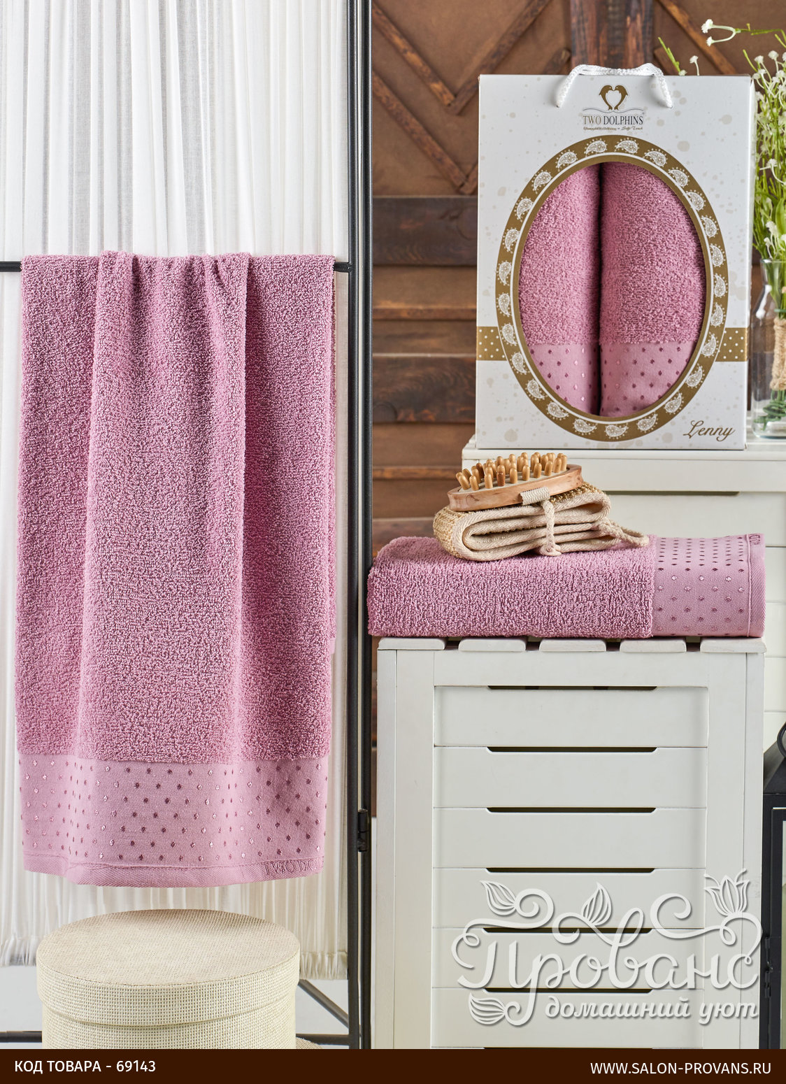 Подарочный набор полотенец для ванной 50х90, 70х140 Two Dolphins LENNY хлопковая махра лиловый
