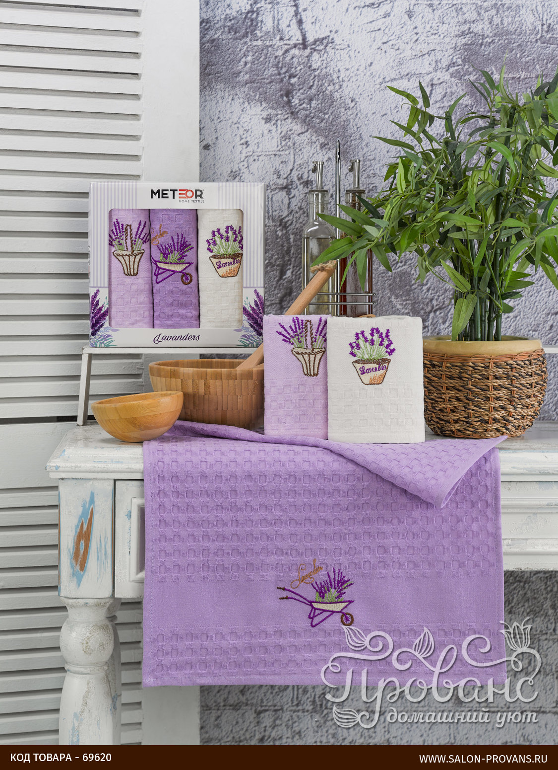 Подарочный набор полотенец для кухни 40х60(3) Meteor BIONCE хлопковая вафля лаванда