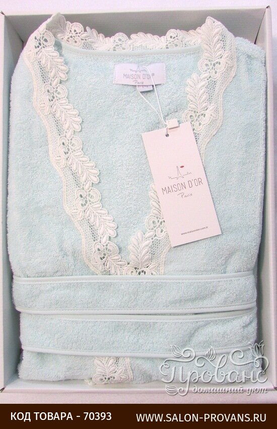 Женский халат из коллекции DINA от турецкого бренда Maison Dor, изготовленный из смеси высококачественного хлопка и бамбука, украшенного изящным кружевом.
