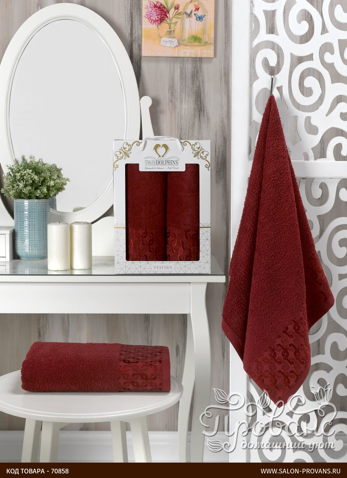 Подарочный набор полотенец для ванной 50х90, 70х140 Two Dolphins VESPIRA хлопковая махра бордовый