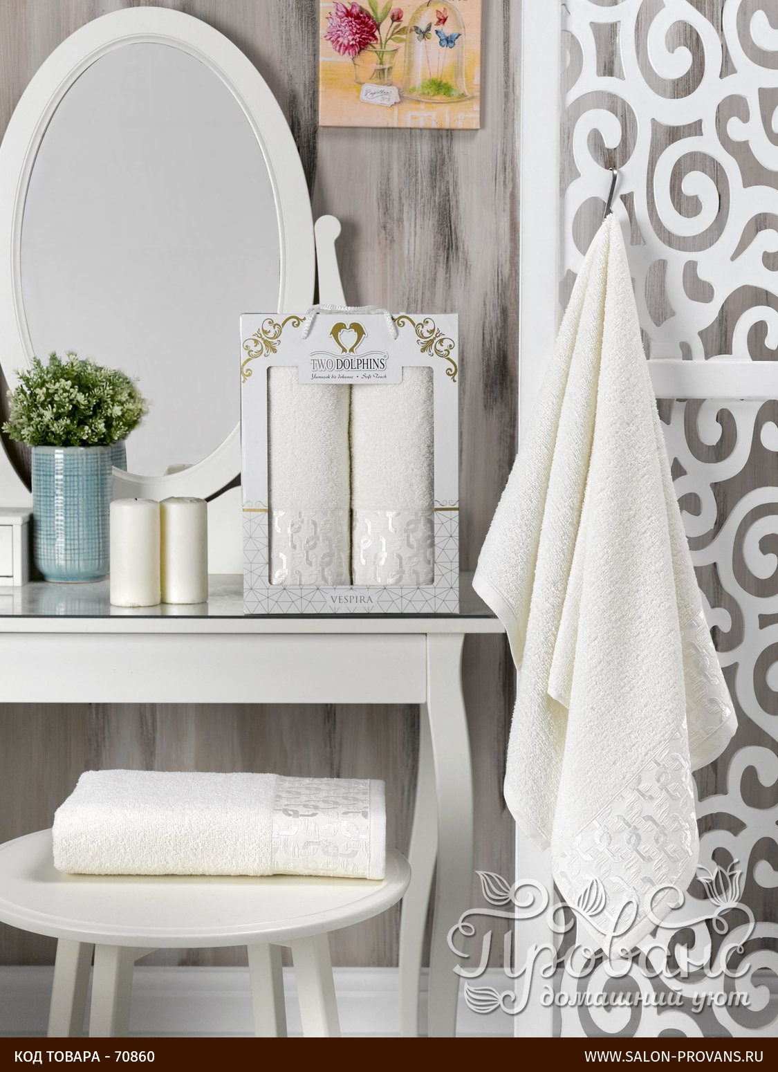 Подарочный набор полотенец для ванной 50х90, 70х140 Two Dolphins VESPIRA хлопковая махра кремовый