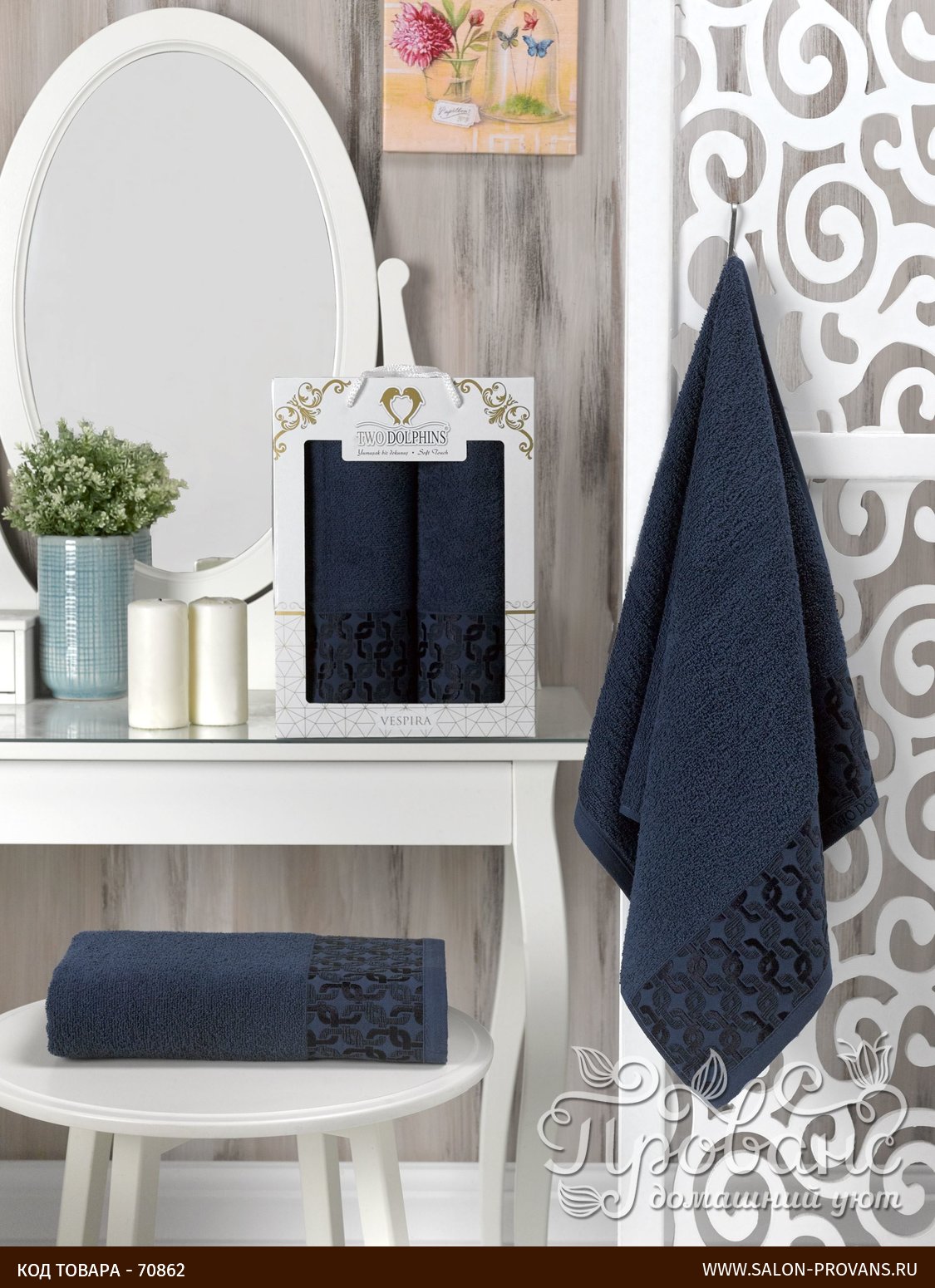 Подарочный набор полотенец для ванной 50х90, 70х140 Two Dolphins VESPIRA хлопковая махра синий