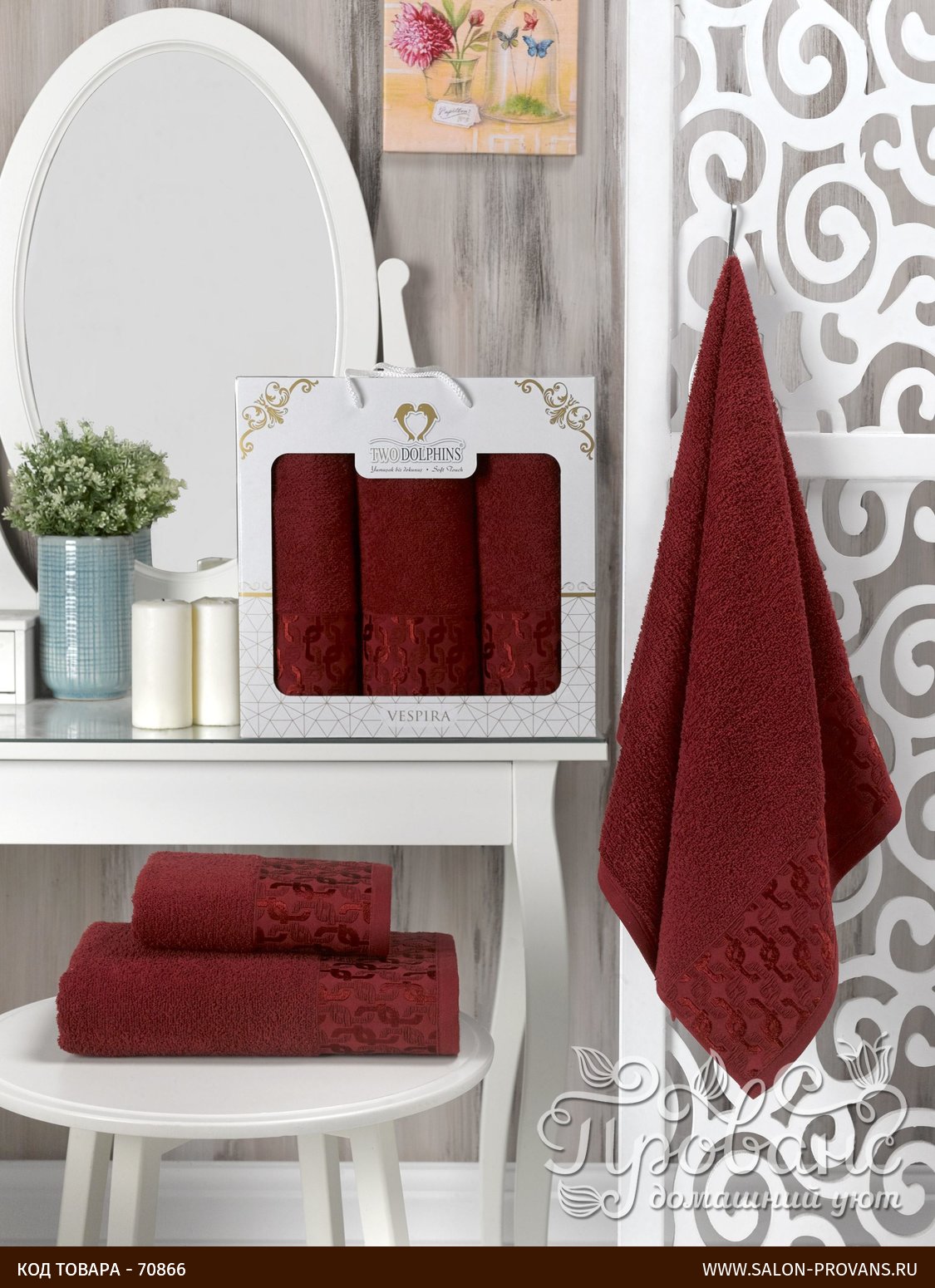 Подарочный набор полотенец для ванной 50х90(2), 70х140(1) Two Dolphins VESPIRA хлопковая махра бордовый
