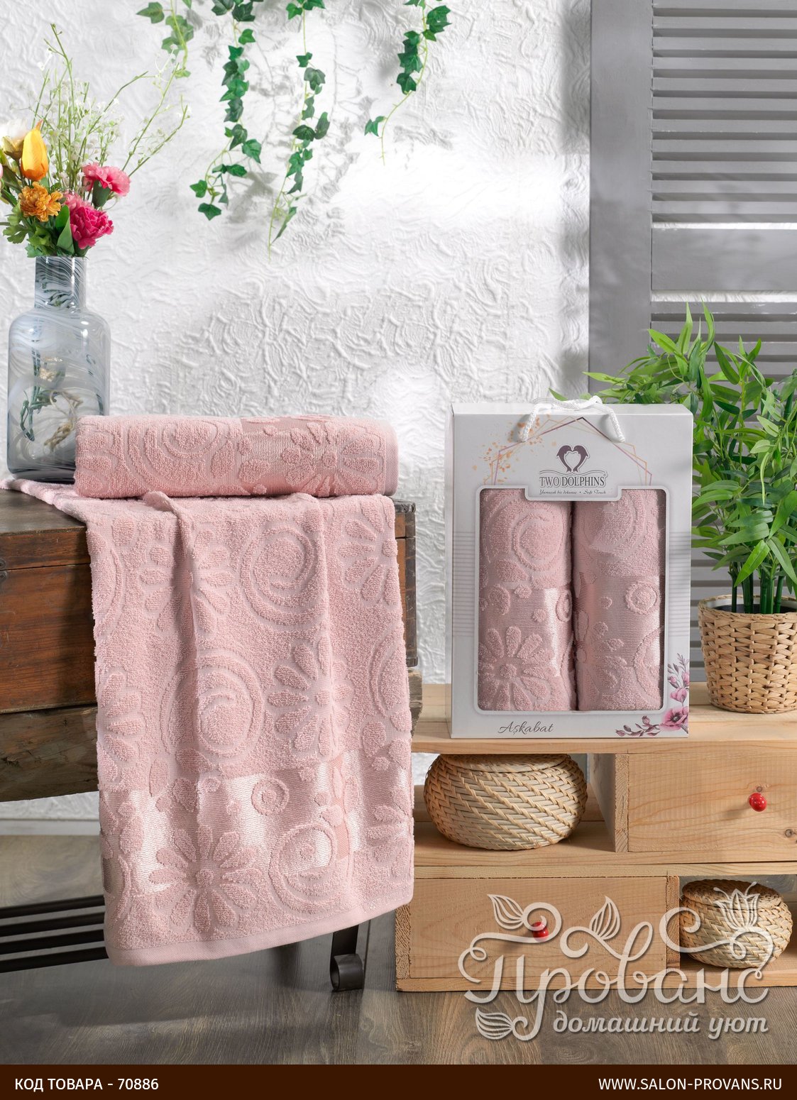 Подарочный набор полотенец для ванной из коллекции ASKABAT от крупнейшего турецкого производителя Two Dolphins. Полотенца изготовлены из качественной 100% хлопковой махры высокой плотности, мягкой и приятной на ощупь, хорошо впитывающей влагу. Ткань украшена жаккардовым орнаментом.