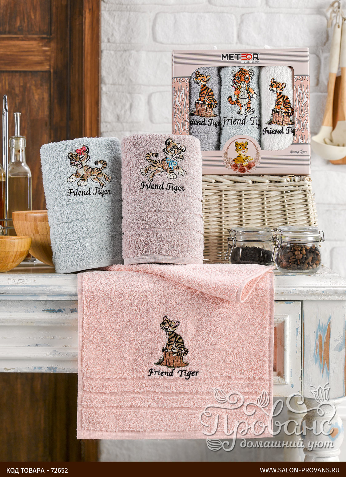 Подарочный набор из трёх кухонных полотенец из коллекции BIONCE от турецкого производителя Meteor. Полотенца изготовлены из качественной 100% хлопковой махры, мягкой и приятной на ощупь, хорошо впитывающей влагу. Ткань украшена милой вышивкой.
