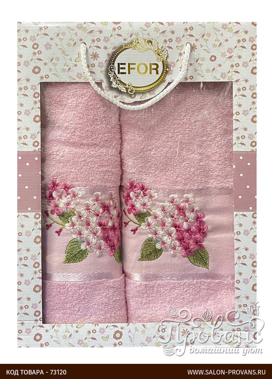 | Артикул | Набор полотенец EFOR из 2-х предметов (50*90; 70*140) букет сирени (розовый/сухая роза) |