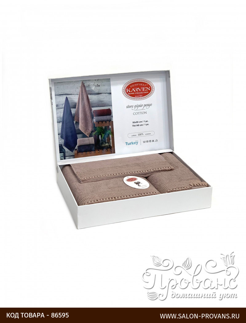 Подарочный набор из трёх полотенец для ванной от турецкого бренда KARVEN. Полотенца изготовлены из 100% хлопка высокой плотности, мягкие и приятные на ощупь, хорошо впитывают влагу.