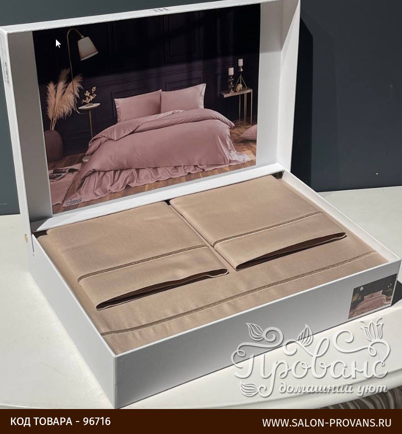 Постельное белье упаковано в фирменную подарочную картонную коробку.